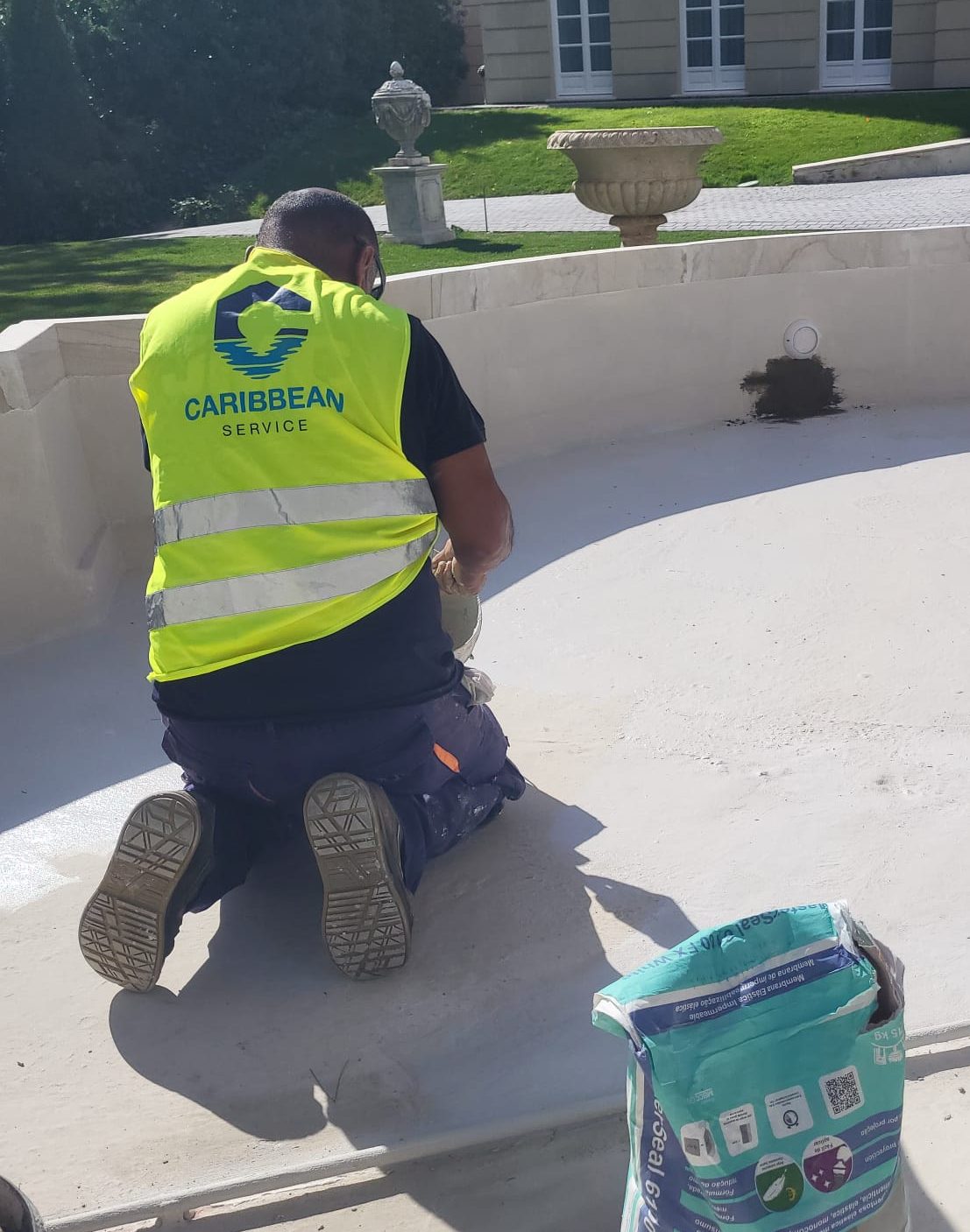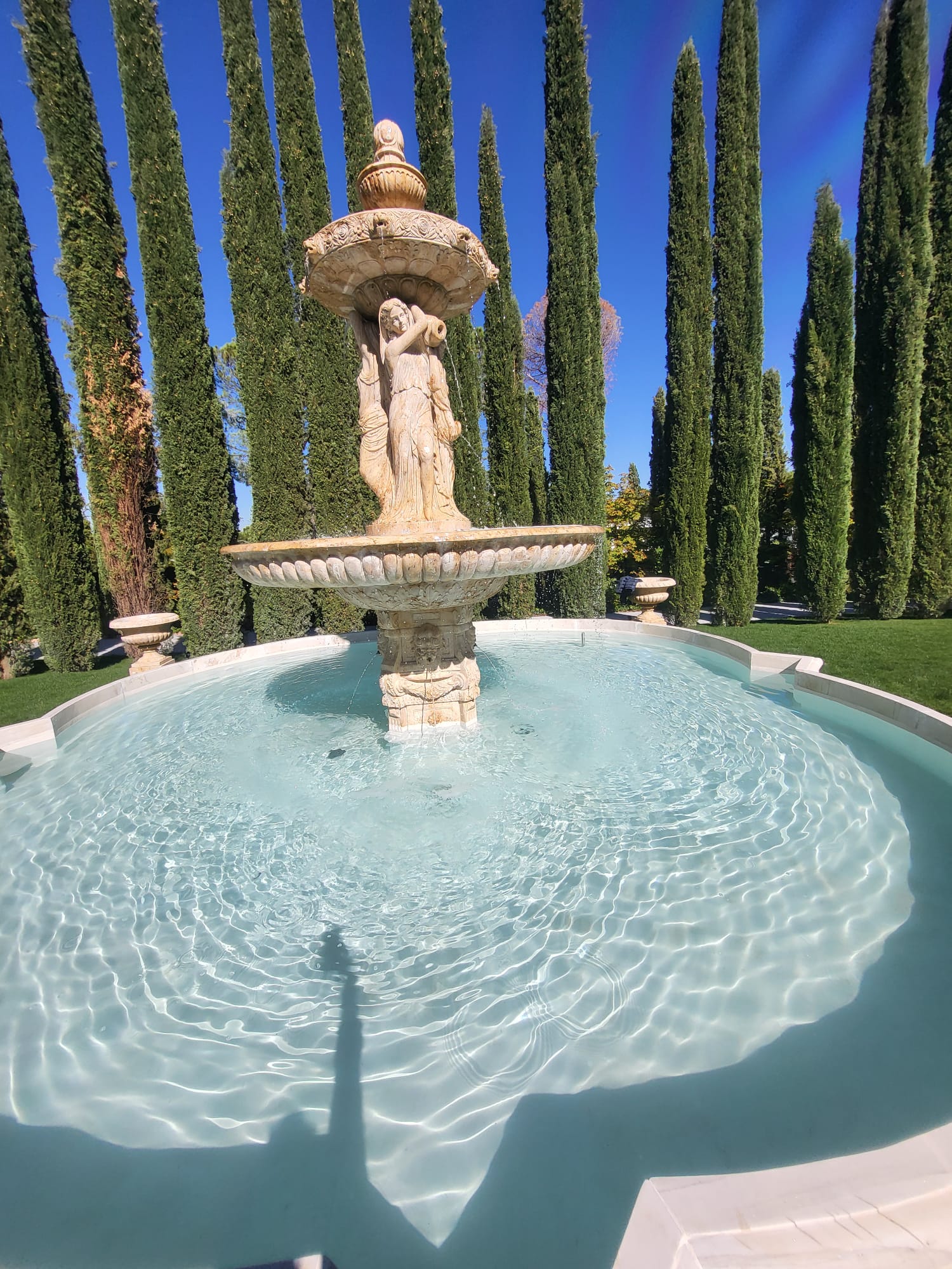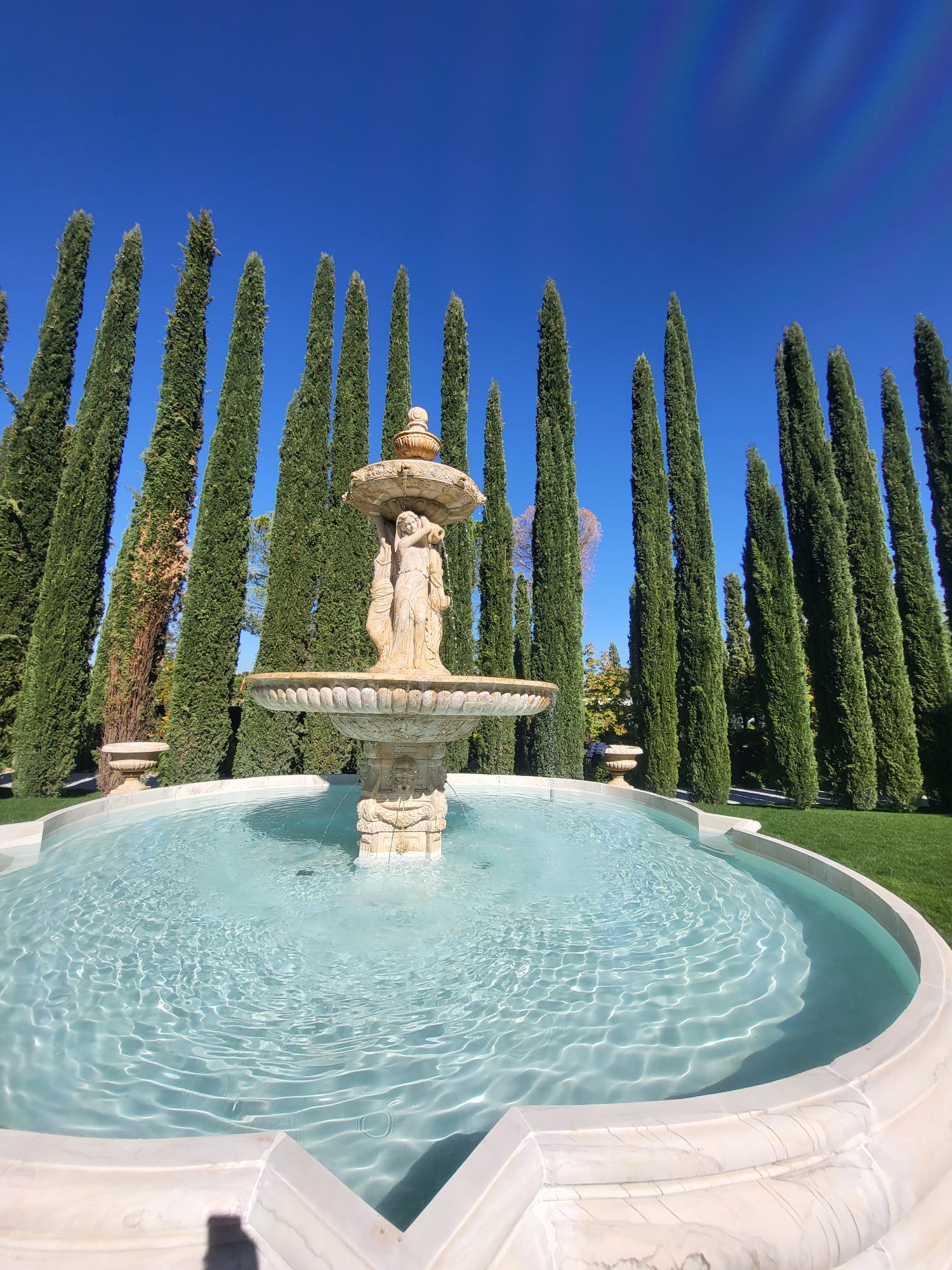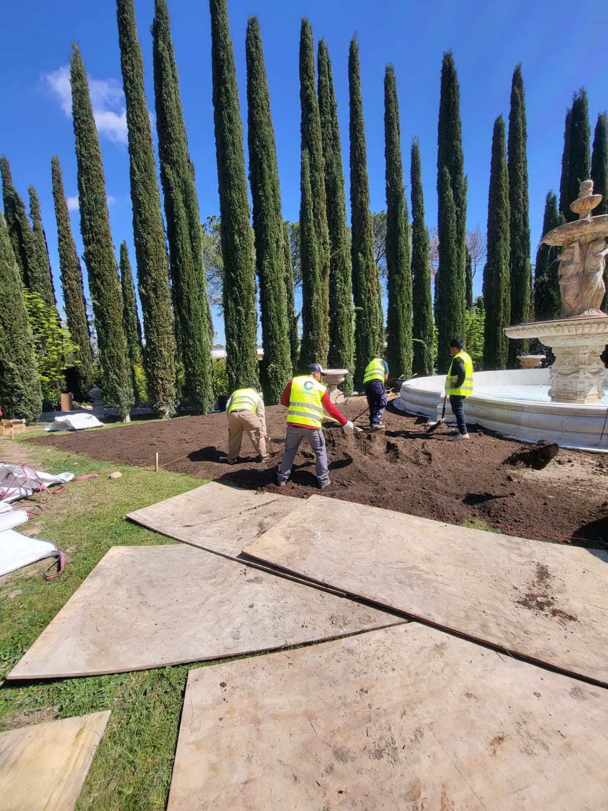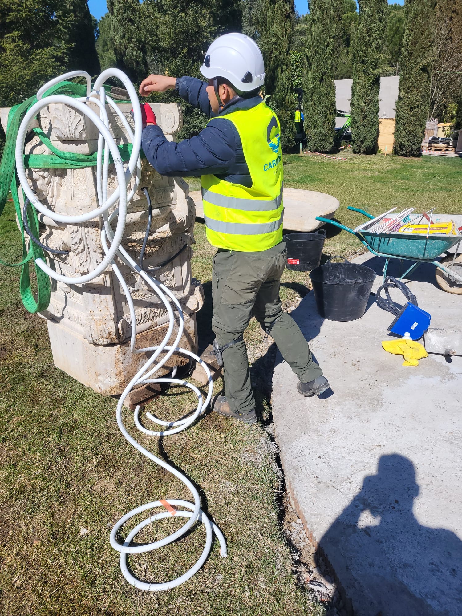 Se llevó a cabo la impermeabilización del vaso de la fuente, la instalación de iluminación subacuática en blanco cálido, aportando elegancia y ambiente, y la colocación de fuentes accesorias que completan y realzan el conjunto del recinto.