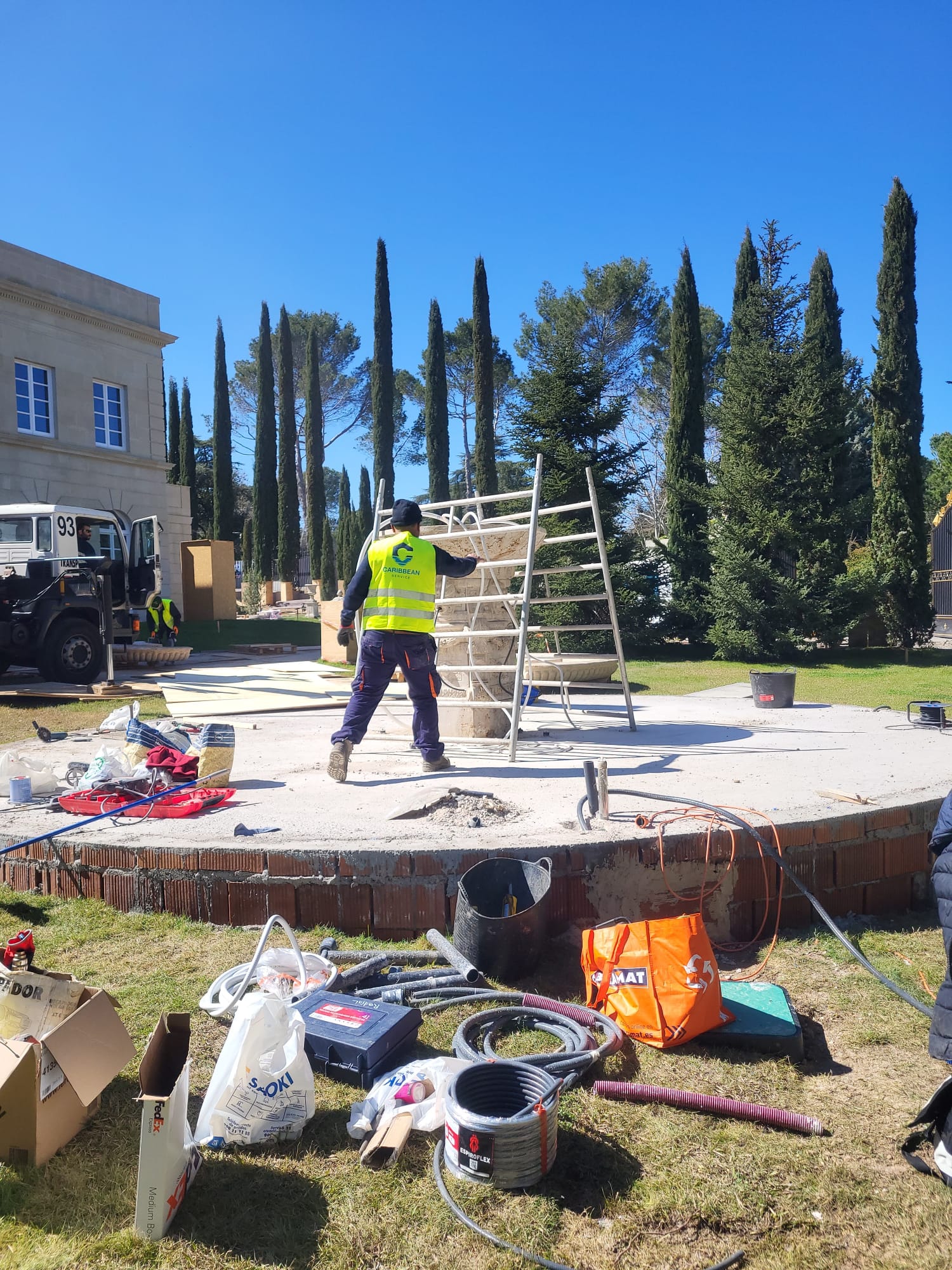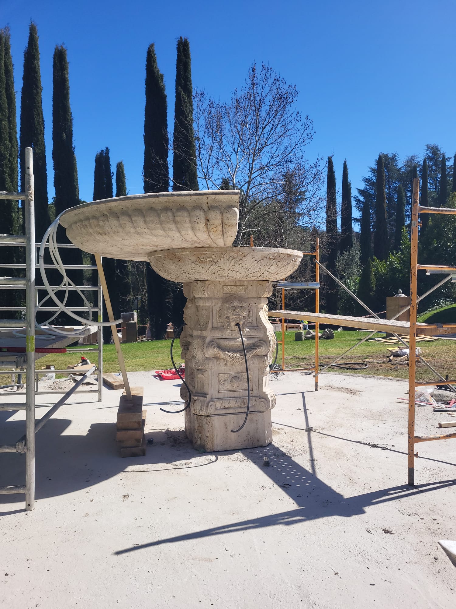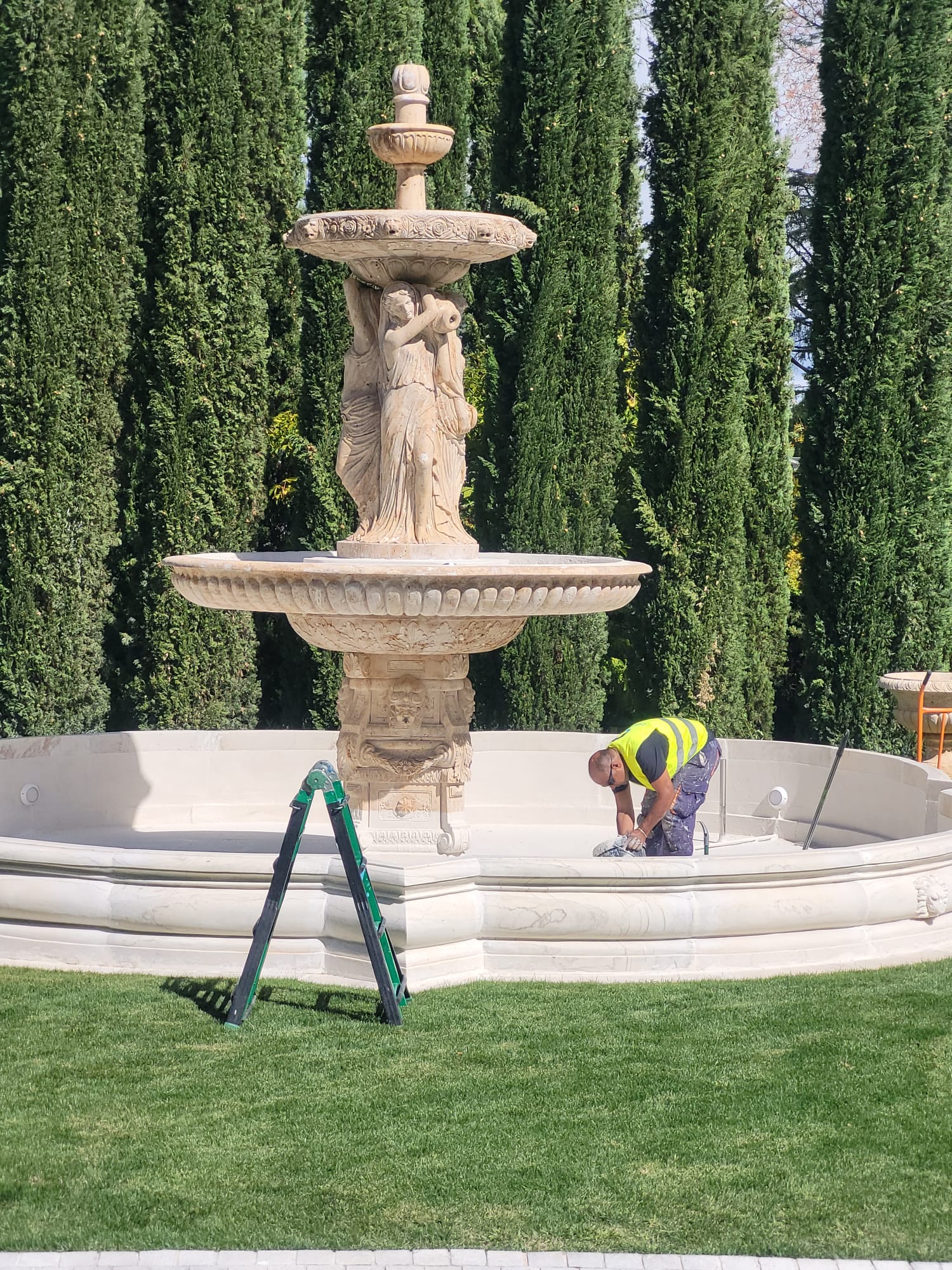 Proyecto ejecutado con especial atención al detalle, realizando la perforación precisa de piezas de mármol para la integración de la instalación hidráulica y la posterior colocación de boquillas generadoras del chorro de agua e instalación de depuradora.