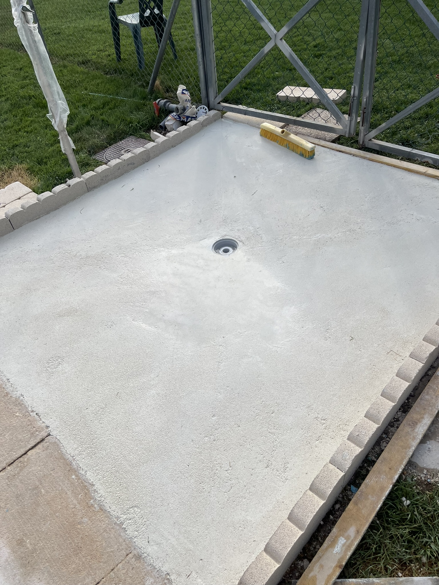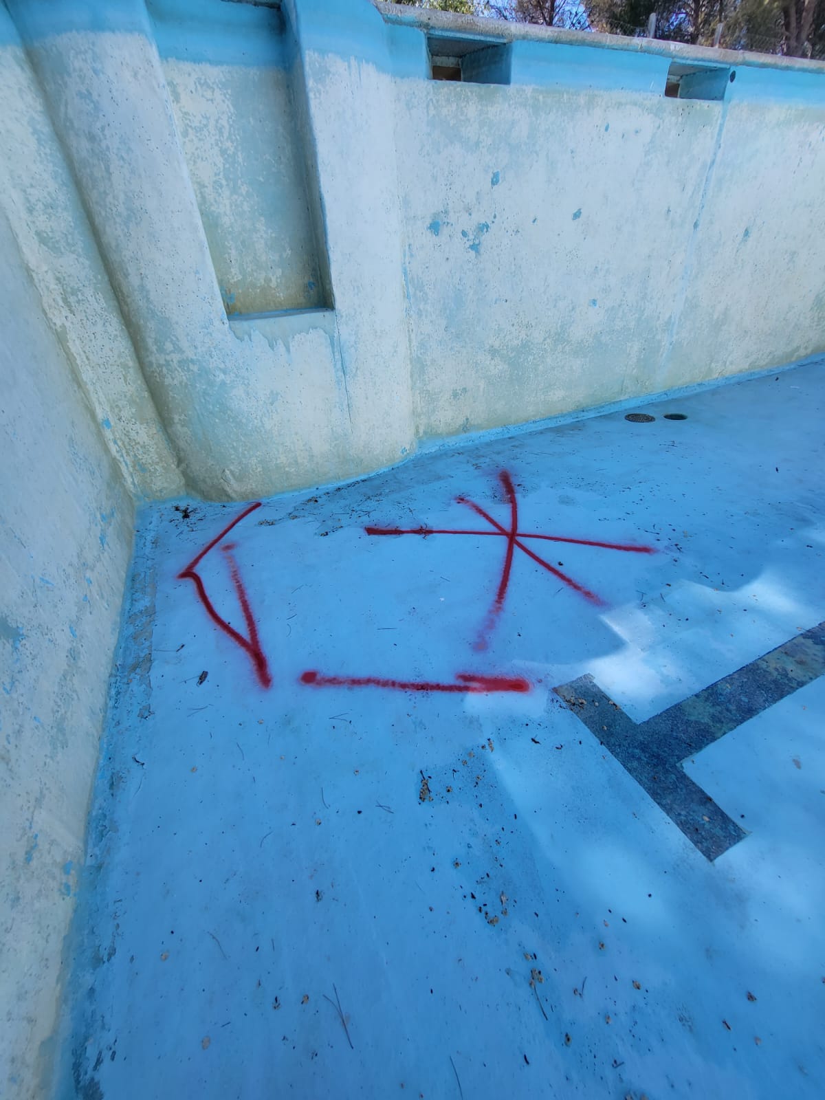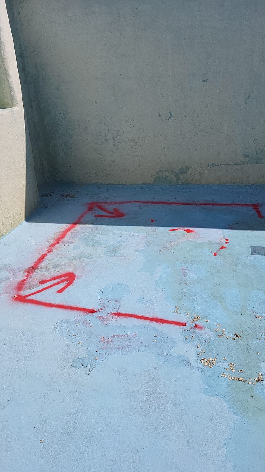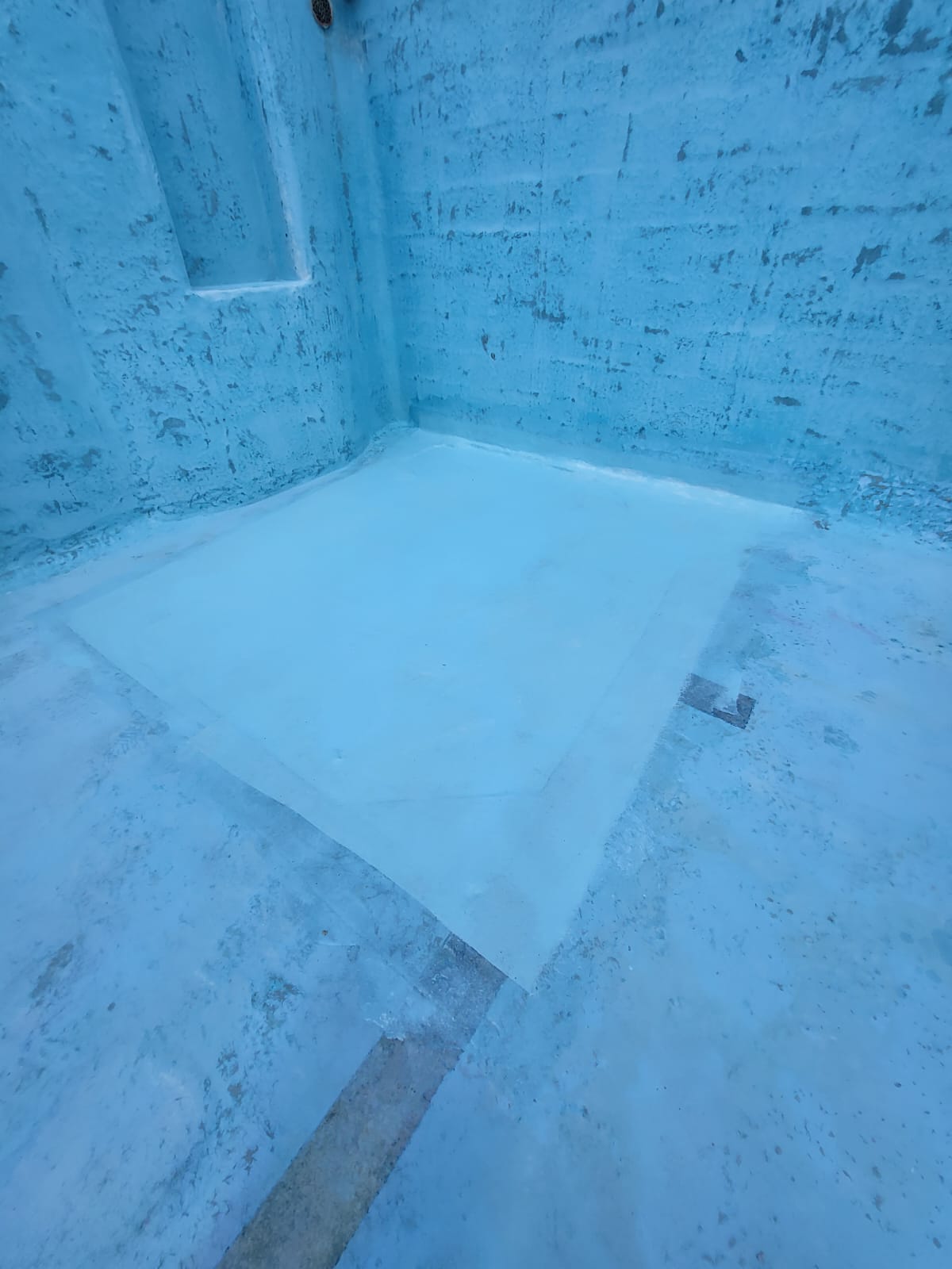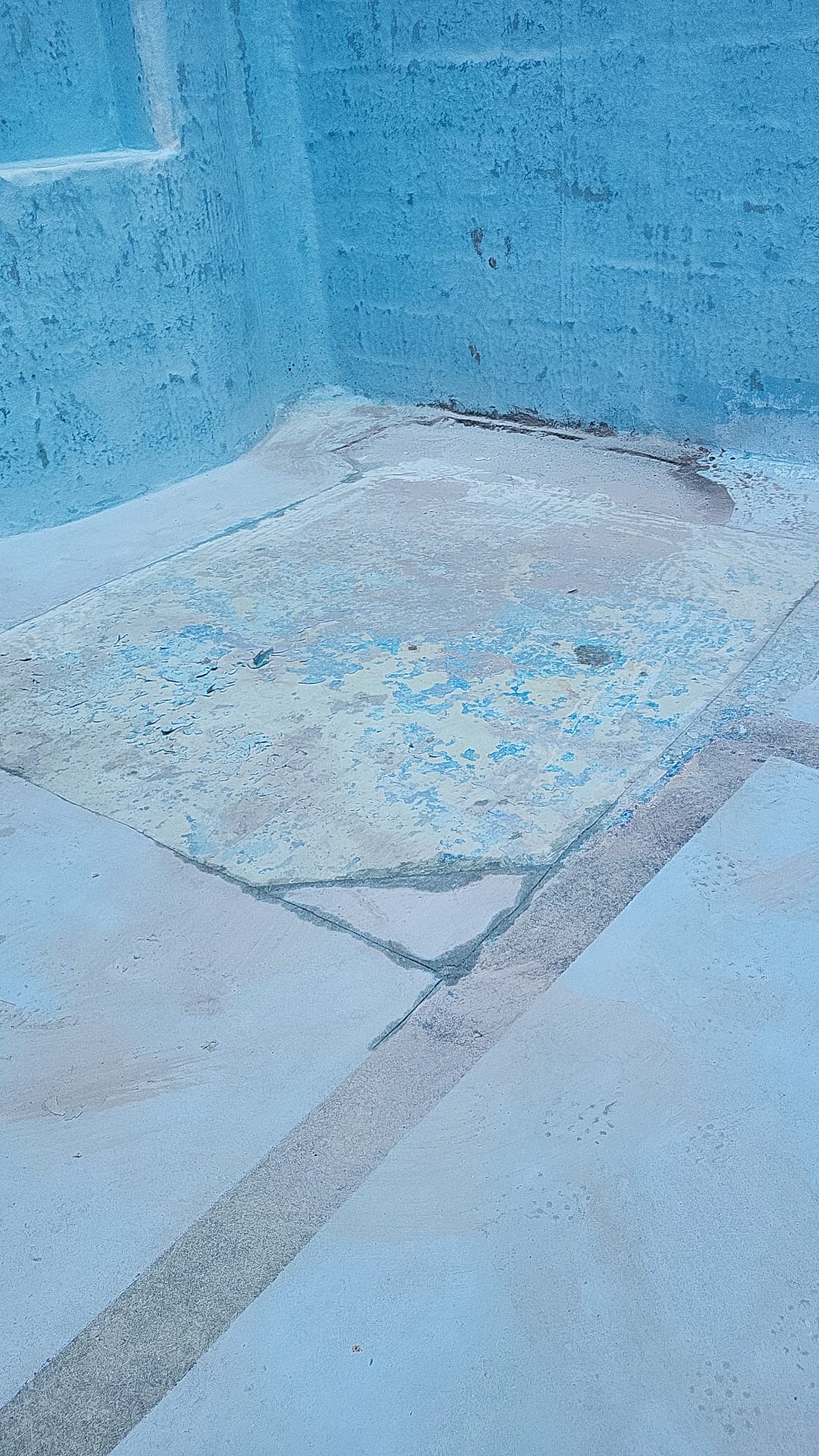 Rehabilitación de piscina comunitaria de fibra, mediante pintura con resina de poliéster y reparación de bolsas en el fondo del vaso, recuperando estanqueidad, resistencia y un acabado renovado.